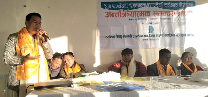 ह्योल्मो-सिन्धु-मेलम्ची उपत्यका सामाजिक उत्थान कार्यक्रम सञ्चालन समिति (साउका) ले आयोजना गरेको ‘सुप कार्यक्रम सञ्चालन तथा लेभि सरोकार बिषयक’ अन्तर्क्रियात्मक गोष्ठीमा सहभागीहरुले मेलम्ची खानेपानी आयोजना पक्ष समक्ष यस्तो माग गरेका हुन् । आफ्नो हकअधिकार गुम्ने खतरा रहेको भन्दै उनिहरुले आफ्नो पक्षमा लडिदिन जनप्रतिनिधिहरुलाई आवहन समेत गरेका छन् ।