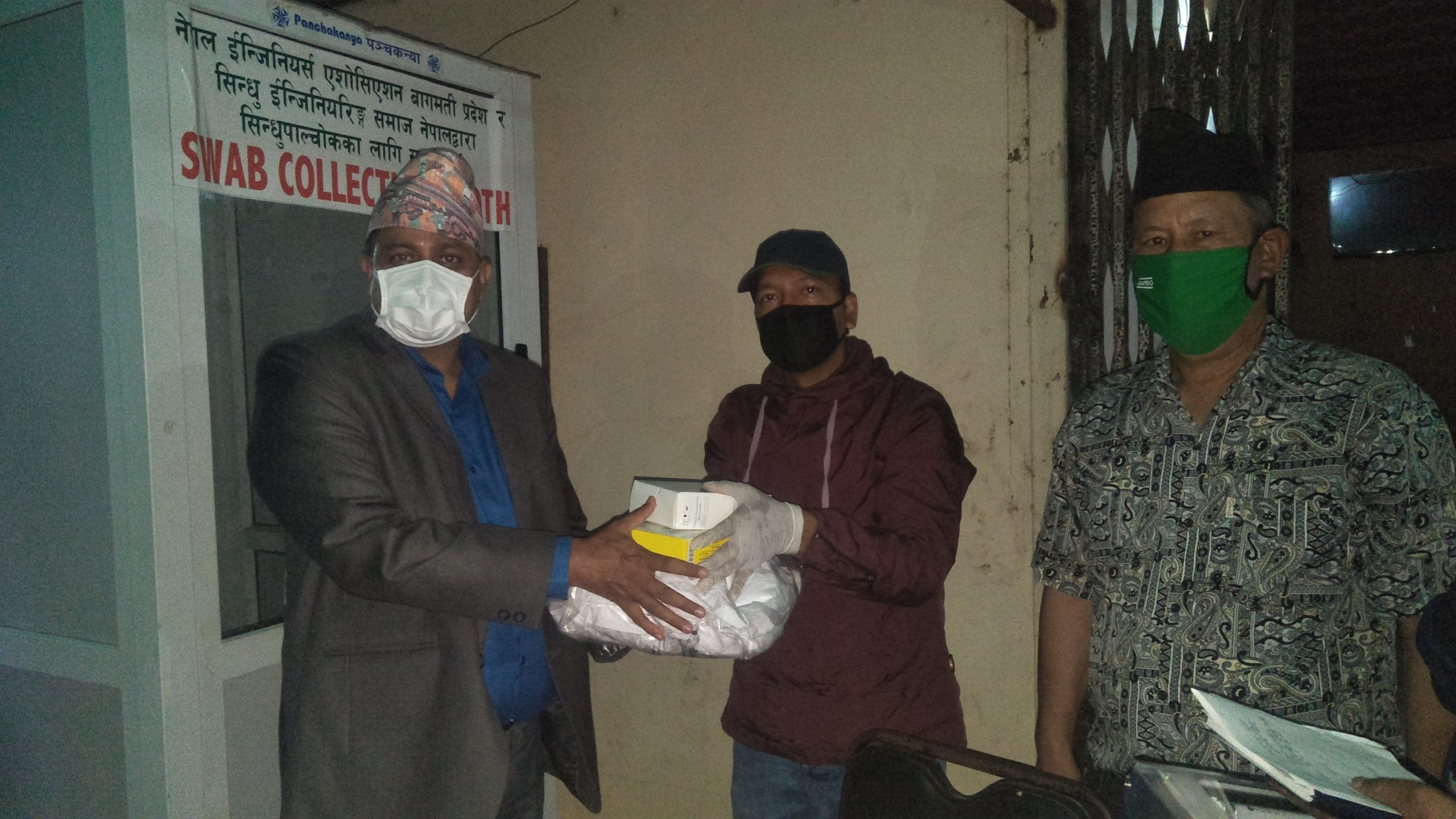नेपाल इन्जिनियरियर्स यशोसियसन वाग्मती प्रदेश र सिन्धु ईन्जिनियरिङ्ग समाजले जिल्ला विपद ब्यस्थापन समितिलाई स्वाब संकलन बुथ लगाएत आवस्यक स्वास्थ्य सामग्री हस्तान्तरण गरेपछि अब चौतारा, बाह्रबिसे र मेलम्ची तीनै ठाउँमा शुरक्षित रुपमा स्वाब संकलनको लागि सहज भइको छ ।