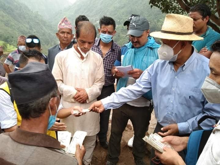 संस्थाका पदाधिकारीले नेता बस्नेतको उपस्थितीमा पहिरोपीडितलाई भेटेर आर्थिक सहयोग हस्तान्तरण गरेको हुन्।