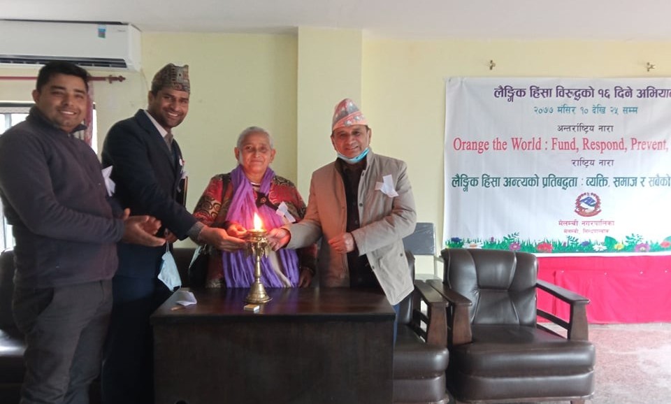 मेलम्ची । नगरपालिकामा सेवा लिन आउने सेवा ग्राहिलाइ सम्मानपूर्व सेवा दिनको लागि मेलम्ची नगरपालिकाका प्रमुख डम्बर अर्यालले निर्देशन दिएका छन्। लैङ्गिक हिंसा अन्त्यको प्रतिबद्धता, व्यक्ति समाज र सबैको ऐक्यबद्धता भन्ने मुल नाराका साथ बुधबारबाट सुरु भएको लैङ्गिक हिंसा विरुद्धको १६ दिने अभियानको उद्घाटन गर्दै नगरप्रमुख अर्यालले यस्तो निर्देशन दिएका हुन्।