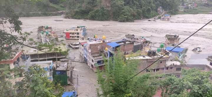 हेलम्बु गाउँपालिका १ मा गएको पहिरोले मेलम्ची खाेला थुनिएपछि अाएकाे बाढीले तिम्बु, चनौटे र मेलम्ची बजार ध्वस्त बनाएकाे छ।