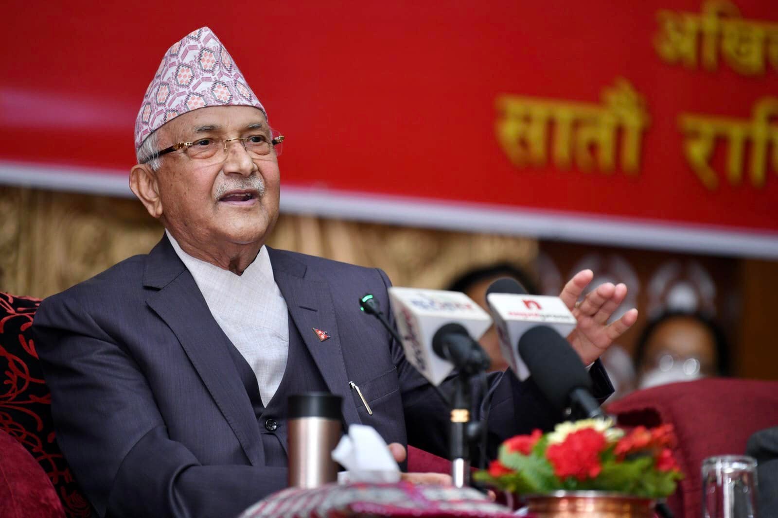 अहिले देशमा दुई खाले राजनीतिक शक्ति रहेको भन्दै ओलीले थपे, ‘कांग्रेस–कम्युनिष्ट होइन,परमादेशी, प्रतिगामी, कम्युनिष्ट विरोधी शक्ति र हामीले भनेको जनादेशको शक्ति हो।’