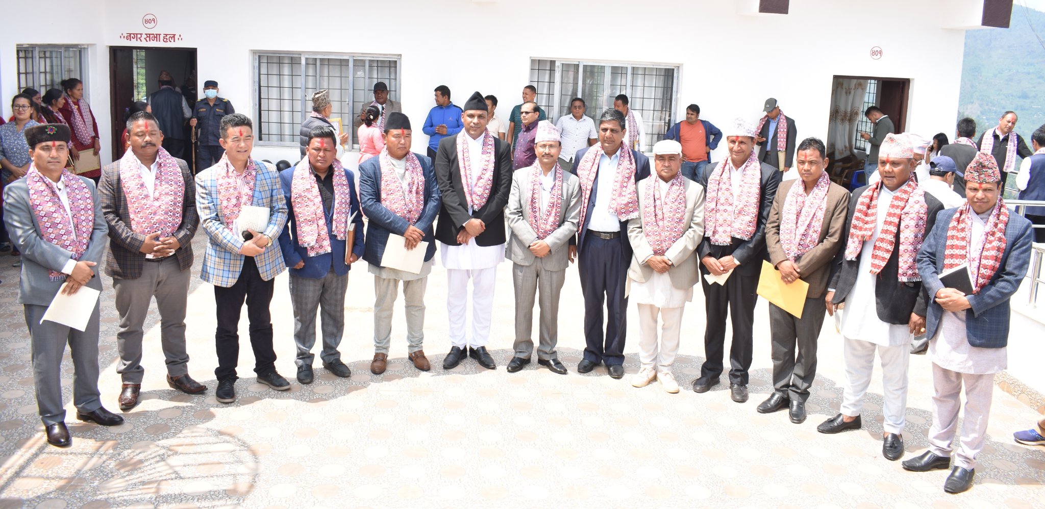 जिल्ला न्यायाधीश तथा जिल्ला निर्वाचन आयुक्त चन्द्र प्रकाश तिवारीले सबै पालिकाका प्रमुख तथा अध्यक्षलाई शपथग्रहण गराएका हुन्।