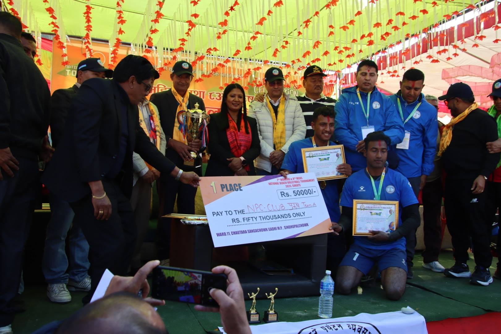महिला तथा पुरुष दुवैतर्फ प्रथम द्वितिय, तृतिय र सान्तोना हुने टिमले क्रमश पचास हजार , पच्चिस हजार, पन्ध्र हजार र दश हजार नगद, ट्रफि, प्रमाणपत्र मेडल प्राप्त गरे ।