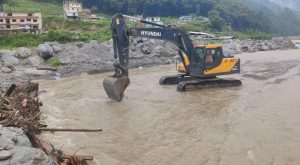 मेलम्चीमा वर्षाले बगाएकाे अस्थायी पुल मर्मत गरिँदै