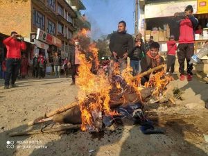ओलीको प्रतिगामी कदमविरुद्ध सिन्धुपाल्चोकमा पुत्ला दहन (फोटो फिचर)